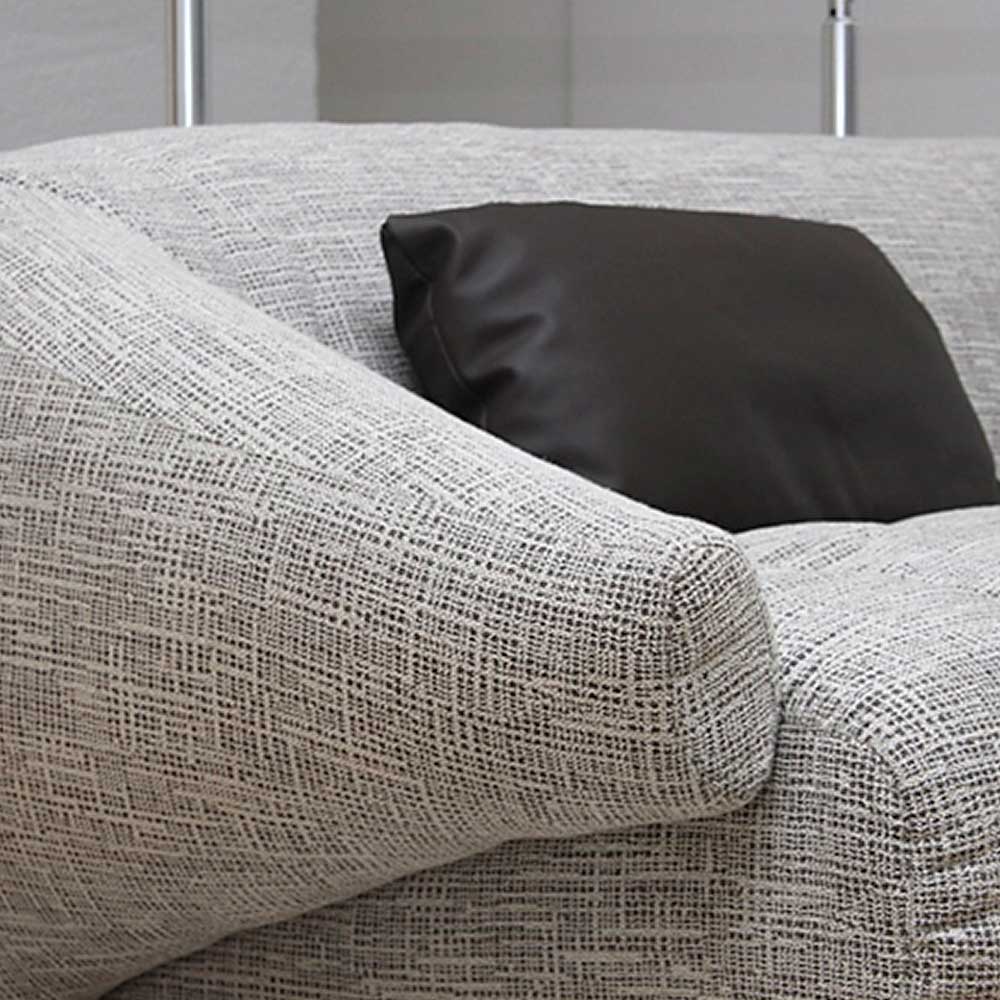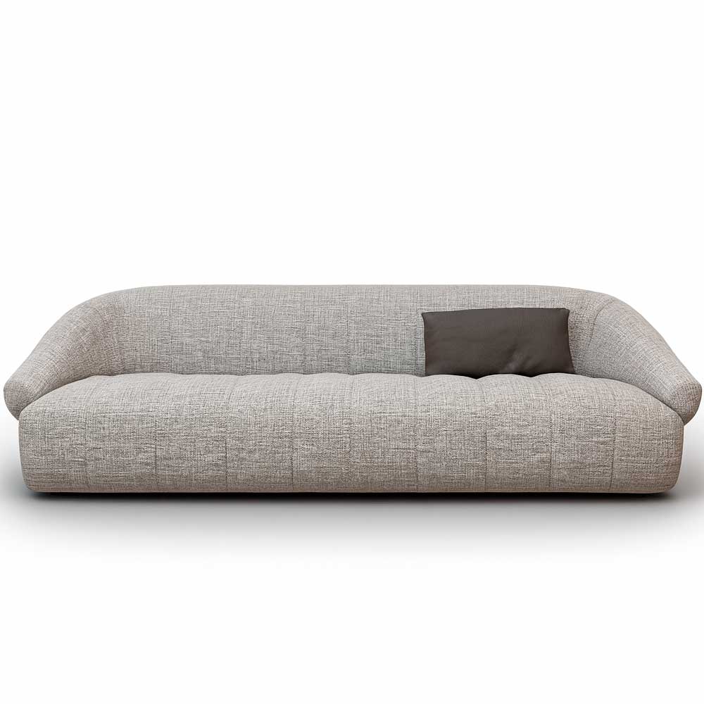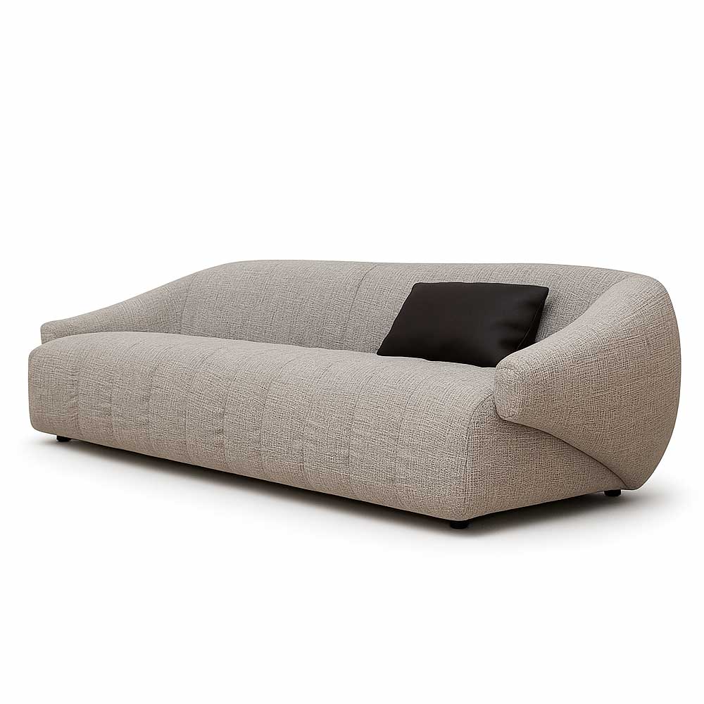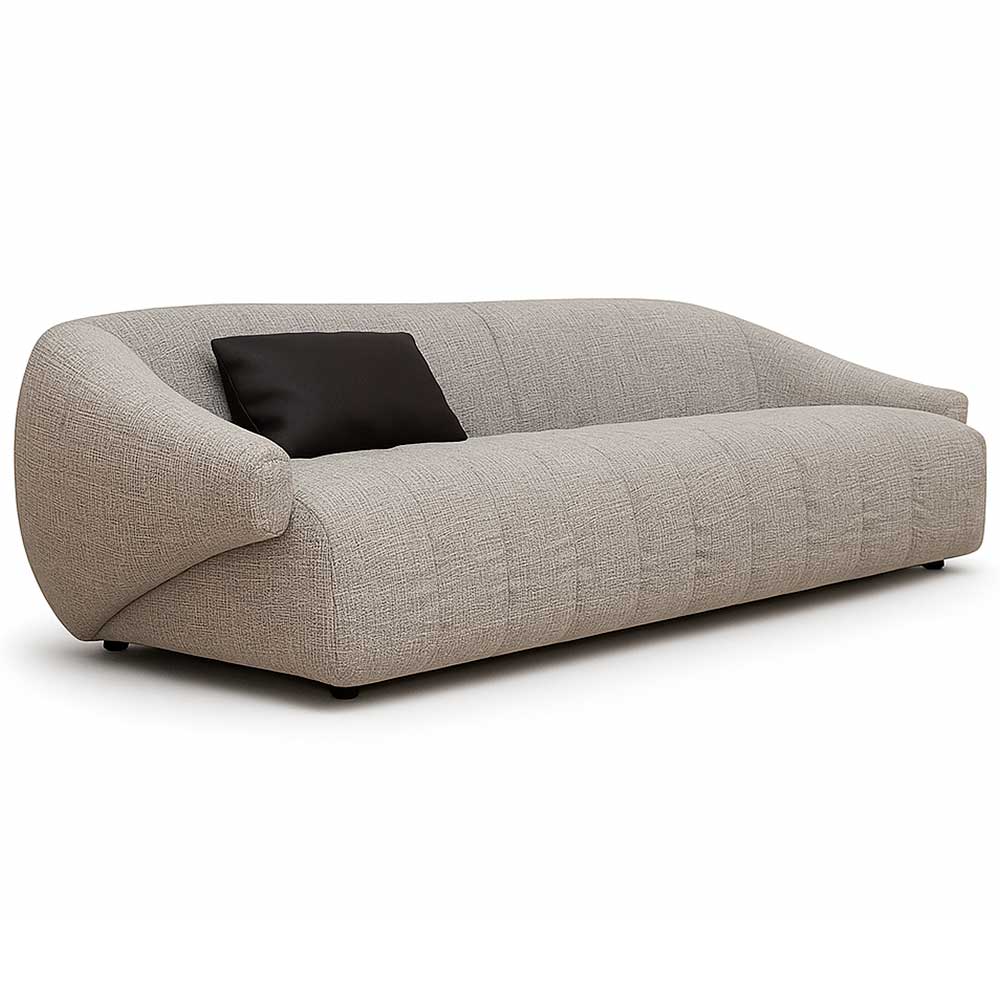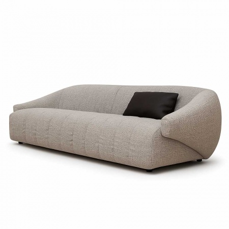 Диван в мягкой серой ткани создаёт ощущение спокойного, уютного пространства. Плавные линии корпуса формируют комфортную посадку, а сочетание наполнения пух-перо и высокоэластичного пенополиуретана обеспечивает мягкость без потери опоры.