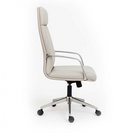 Высокая спинка с подголовником поддерживает правильную осанку, делая кресло идеальным выбором для офиса руководителя или переговорной зоны.